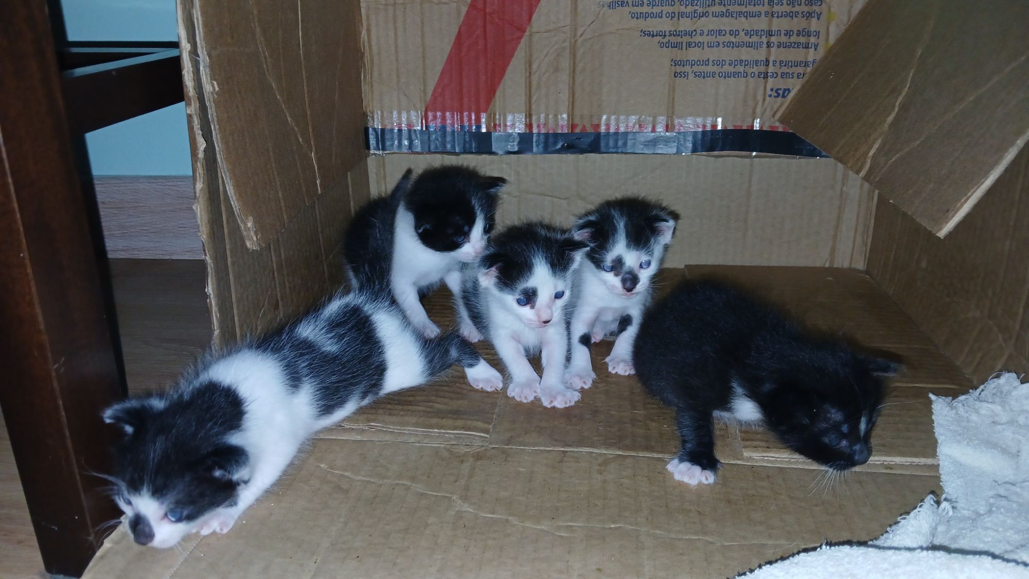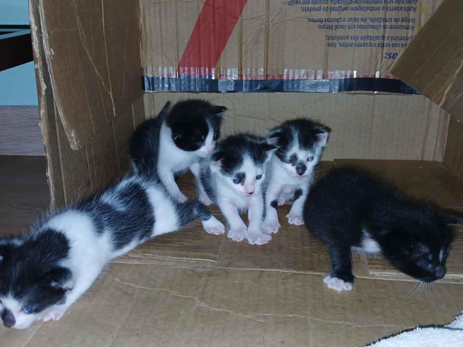 Gato pequeno, 2 a 6 meses, SRD-ViraLata, cor Branca/Preta.